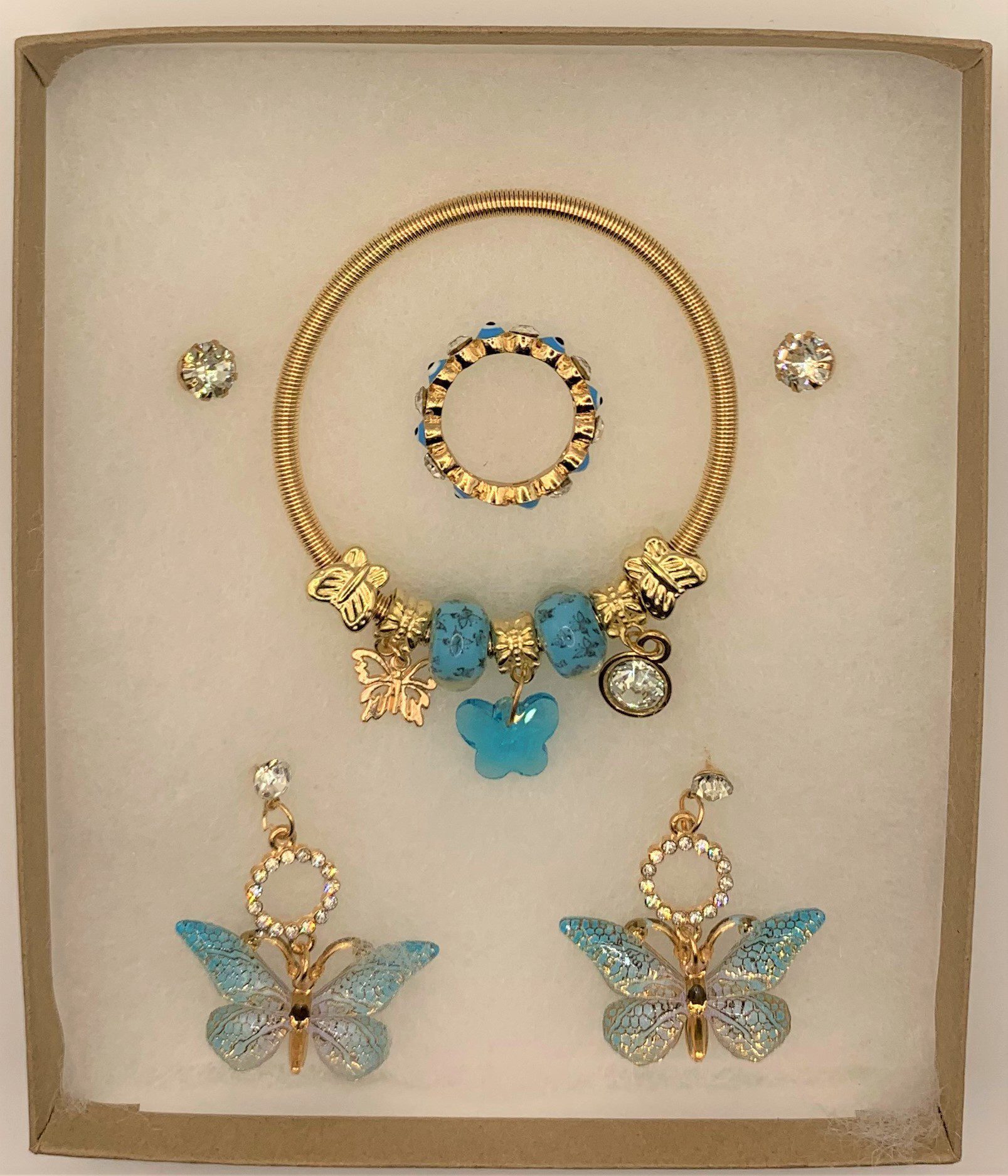 Lovely Butterfly Bracelet 4pcs Set with (2)Earrings and Free Ring (D1)
